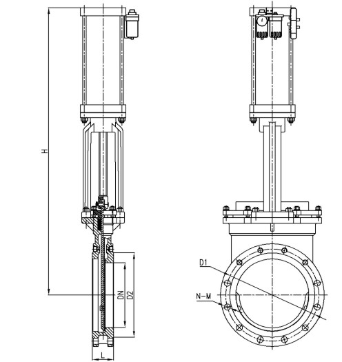 氣動刀形閘閥借助壓縮空氣驅(qū)動的閥門。氣動刀型閘閥簡單地說就是用氣動執(zhí)行器控制閥門,從而實現(xiàn)閥門的開和關。其可分為上下兩部分,上半部分為氣動執(zhí)行器,下半部分為閥門。本類閥門在管道中一般應當水平安裝。