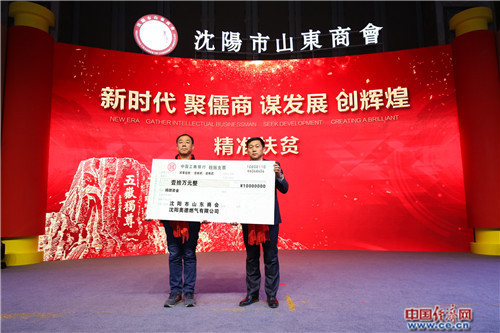 當(dāng)天,沈陽市山東商會還和沈陽奧德燃?xì)庥邢薰鞠蜻|中區(qū)偏遠(yuǎn)貧困鄉(xiāng)村奉獻(xiàn)愛心,共為牛心坨鎮(zhèn)姜家村捐款人民幣10萬元,用于建設(shè)百姓文化廣場大舞臺,豐富村民業(yè)余文化生活。